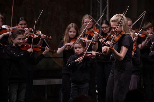 Es ist hier nicht der Ort, auf die Vielzahl der in diesem Programm vorgetragenen Stücke einzeln einzugehen. In Erinnerung bleibt der auffällig saubere, satte Streicherklang der verschiedenen, nach Altersstufen gestaffelten Ensembles. Dieser Sound hängt sicherlich mit der besonderen Methodik zusammen, welche die Streicherakademie verfolgt: Bei den Jüngsten geht es los mit viel Singen, dies konsequent auch auf Tonsilben, also der Einübung der Solmisation. Dazu kommen tänzerische Übungen und vor allem das Prinzip: Weg mit den Noten! Das Instrument selbst, die Anforderungen seiner Handhabung und der Klang, den man daraus zieht, stehen auf diese Weise im Zentrum der Aufmerksamkeit des Schülers. Der Erfolg dieser Methode ist hörbar. Besonders glücklich sind die Momente, in denen künstlerischer Ausdruck und pädagogische Methode direkt zusammenfließen.
